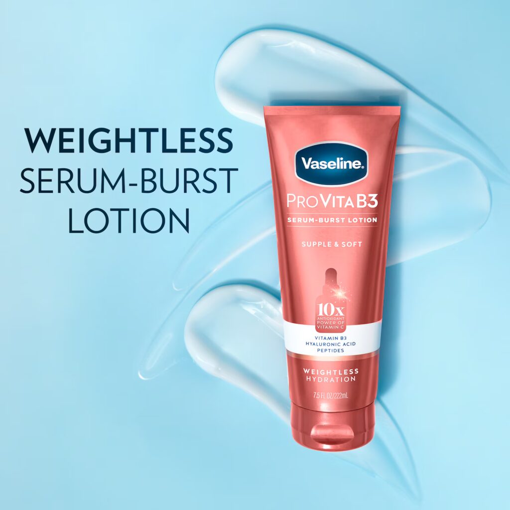 Now, we’re proud to introduce our latest breakthrough: Vaseline® Pro VitaB3 Supple & Soft Serum-Burst Lotion, the next evolution in body care.